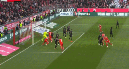 第26分钟,拜仁再次制造威胁,路易斯-迪亚斯接应长传,禁区内摆脱防守,小角度起脚劲射,达门奋力将球扑出。随后的角球攻势,又是奥利塞起球传中,凯恩后点头球击中立柱弹出,不过裁判吹罚金玟哉对门将犯规在先。